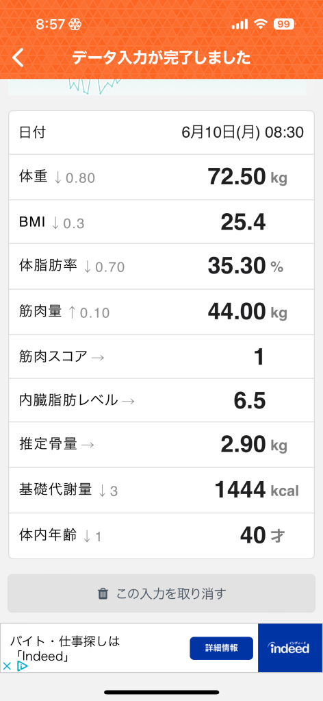 本日の体重は72.5でした☺️